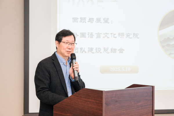 外国语言文化研究院李贵苍院长系统回顾了研究院自2017年成立以来的发展历程。数据显示,研究院专家累计获批国家级项目9项(含重点课题2项);出版著作及译著32部(一级出版社出版物16部);发表核心期刊论文100篇,其中权威期刊论文7篇、一级期刊论文20篇、C刊论文27篇。在青年学者培育方面,通过结对培养机制助力青年教师斩获市厅级及以上课题20项(其中国家级一般项目2项、省部级项目8项、市厅级项目10项);出版学术著作和教材4部;发表论文135篇(C刊及以上33篇)。形成“兴趣导向”“真问题驱动”等特色培养模式。研究院同时举办7场国际学术会议和74期学术沙龙,为学界搭建高水平交流平台。
