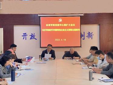 4月18日下午,beat365英国官方网站党委理论学习中心组在学院会议室召开学习贯彻习近平新时代中国特色社会主义思想主题教育专题学习(扩大)会议,学院党委理论学习中心组成员、全体科级干部、党支部书记和委员参加了会议,会议由党委书记张启中主持。