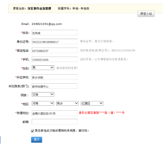 完善相关信息,提交。信息完善后,选报下门课程,课直接提交。