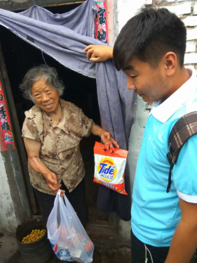 7月1日是我们活动的第一天,也是我们活动重头戏开展的一天。吃过早饭,我们乘车到达辉县,先去了当地的沙窑小学,虽然因为时间的不允许没有进行义务教学,但校长的热情接待让我们深深感动。从小学出来后我们又去了几家老人的家里,给老人带了一些生活用品。询问了老人家里的生活情况,老人的孩子都外出打工,其中一家一位老人独自带着两个小孩,生活艰辛。还有一位老人的老伴,尽管腿受伤,为了生活也带伤外出打工。看了这些老人的生活环境我也很难过,为我们的社会实践带来了很大感触。之后的几天,我们又去看望了几位老人,心中也变得更加沉重,这些老人的生活十分艰辛,我感到我们身上的担子也很沉重。7月5号实践结束,我们乘车回学校,临走时,一些老人出来相送,我们挥手道别。