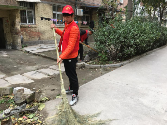 下午2点钟,辅导员老师王一夫带领其年级学生党员申嘉星、范义刚,入党积极分子李高朋、王新悦、郭霁震、张嘉怡、张晋、能帅、孙珊珊、张占蕾等10余名同学驱车40分钟,来到渭滨区新运社区进行义务劳动。南桥办副书记李旸对一行人进行了接待,同时对本次劳动做出相应的安排与分工。领到劳动工具之后,同学们便按照安排区域开始劳动。由于本地秋冬天气风比较大,因此社区内满是落叶,再加上生活区内遍布花坛,给同学们打扫卫生带来了极大的不便。可是过程中无一人叫苦抱怨,每个人根据自己手中劳动工具的种类,进行了合理的分工。