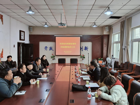 2月17日下午,科研处处长赵磊、副处长黎红波、李中琴等一行前往beat365英国官方网站,针对科研工作展开调研。beat365英国官方网站领导班子全体成员、青年博士以及教师代表共同参与了此次调研会。