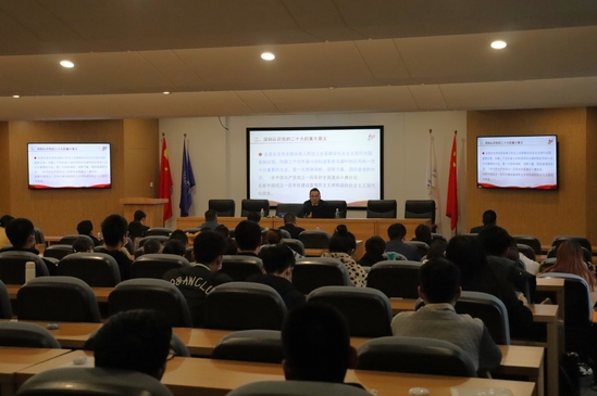 11月24日,党委副书记高志栋为国际商学院师生代表作专题宣讲。他围绕党的二十大提出的重要思想、重要观点、重大战略、重大举措,作了深入浅出、系统全面的宣讲解读。他指出,要深刻领会党的二十大核心要义,要坚持不懈用新时代党的创新理论武装师生、用社会主义核心价值观塑造师生、用党和国家的辉煌成就激励师生,为全面推进学校高质量发展发挥积极作用。