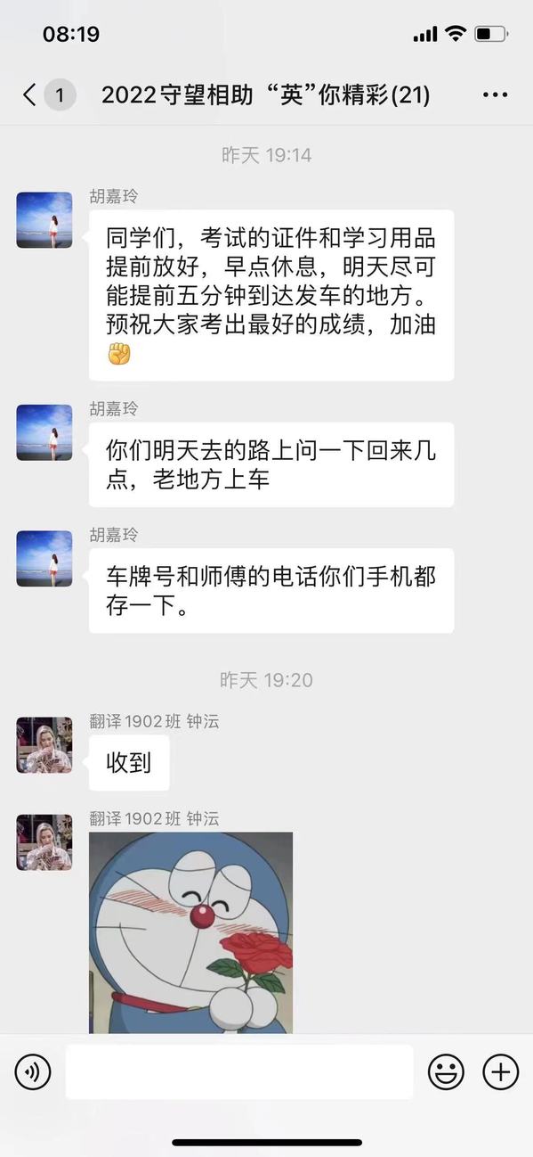 因为不断有老师发烧,考试前夕每天监考人员都在动态调整,给排考工作带来了相当大的难度。但每天有人发烧,又马上有人替补上去。一场感人的接力,在工作群里不断持续。有些老师感染后,在家隔离,但仍每天在群里给考研学生打气,提醒学生考试的注意事项。